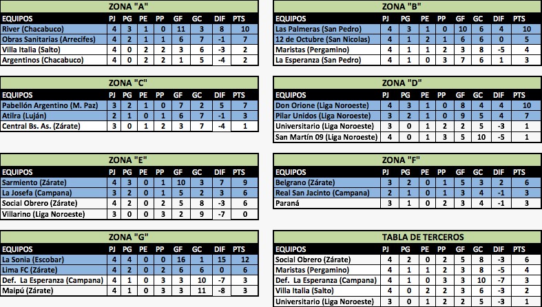 2) En caso de no existir definición por este sistema se deberá recurrir a la tabla general de la Etapa Clasificatoria, contabilizándose la totalidad de los partidos disputados en la Etapa Clasificatoria de la Zona en cuestión, y para clasificar se determinara de la siguiente manera:
