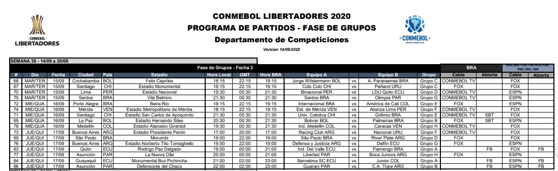 La Dirección de Competiciones de Clubes de la CONMEBOL dio a conocer los canales de transmisión de los partidos de la CONMEBOL Libertadores correspondientes a la Fase de Grupos. Tambi´`en publicamos el comunicado de Conmebol sobre la solicitud del rival de Boca Juniors.