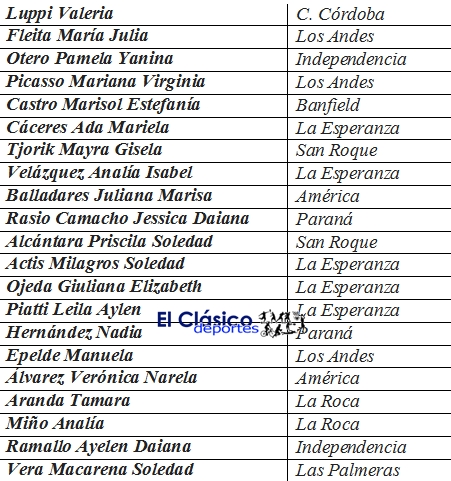 El plantel que tiene a Selva Mendoza como técnica y Franco González preparador físico, sería el siguiente (a confirmar con la presentación de la lista de buena fe, sumando a dos jugadoras de Pescadores: Micaela Olmos y Guadalupe Ramírez).