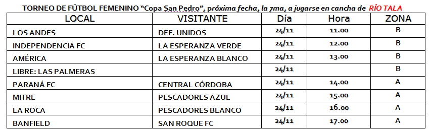 Se jugará en la cancha de Independiente de Río Tala desde las 11 horas. En la zona «A», La Roca (15 puntos) necesita ganar para asegurar el primer puesto, pero ya está en semis, detrás se ubica Banfield (14) y en la lucha San Roque (11). Los dos últimos se miden entre si, el «Taladro» con el empate clasifica. El «Santo» necesita ganar y luego jugar un partido desempate ante el mismo rival.