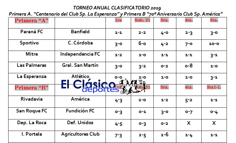 Se completó la quinta fecha del Torneo de Primera A y B de la liga local. Sportivo superó a Central Córdoba y sigue siendo el único líder. En la B goleó I. Portela a Agricultores y tras el triunfo de Rivadavia, los tres marcan el camino. Ingresa y tenes toda la info de primera mano!!