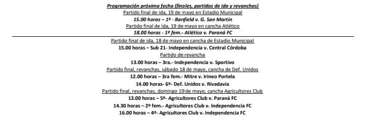 Entre sábado y domingo se juegan las finales de vuelta en divisiones inferiores, que determinarán a los primeros campeones del año. Además, se jugarán las finales de ida en Sub 21, y en las primeras masculina y femenina. A continuación todos los partidos.