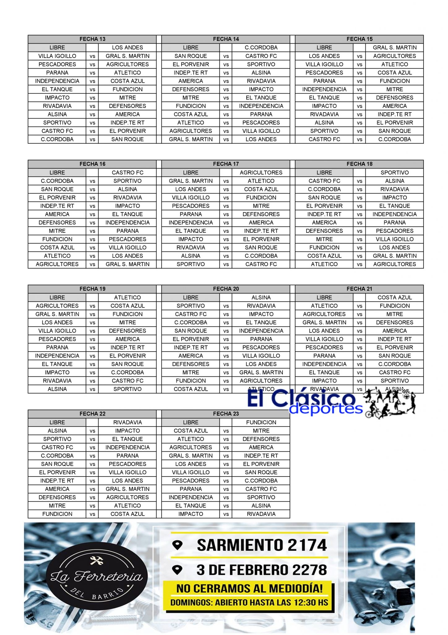 El fixture, con la incorporación de un equipo más (nuevamente son 23) tal lo adelantamos en otra nota (Impacto de Baradero) quedó establecido el formato de torneo y partidos, siendo los que a continuación brindamos: