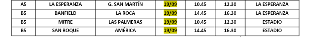 Zona B: Mitre 9; América 9; Banfield 7; Las Palmeras 6; San Roque 4, La Roca 0.